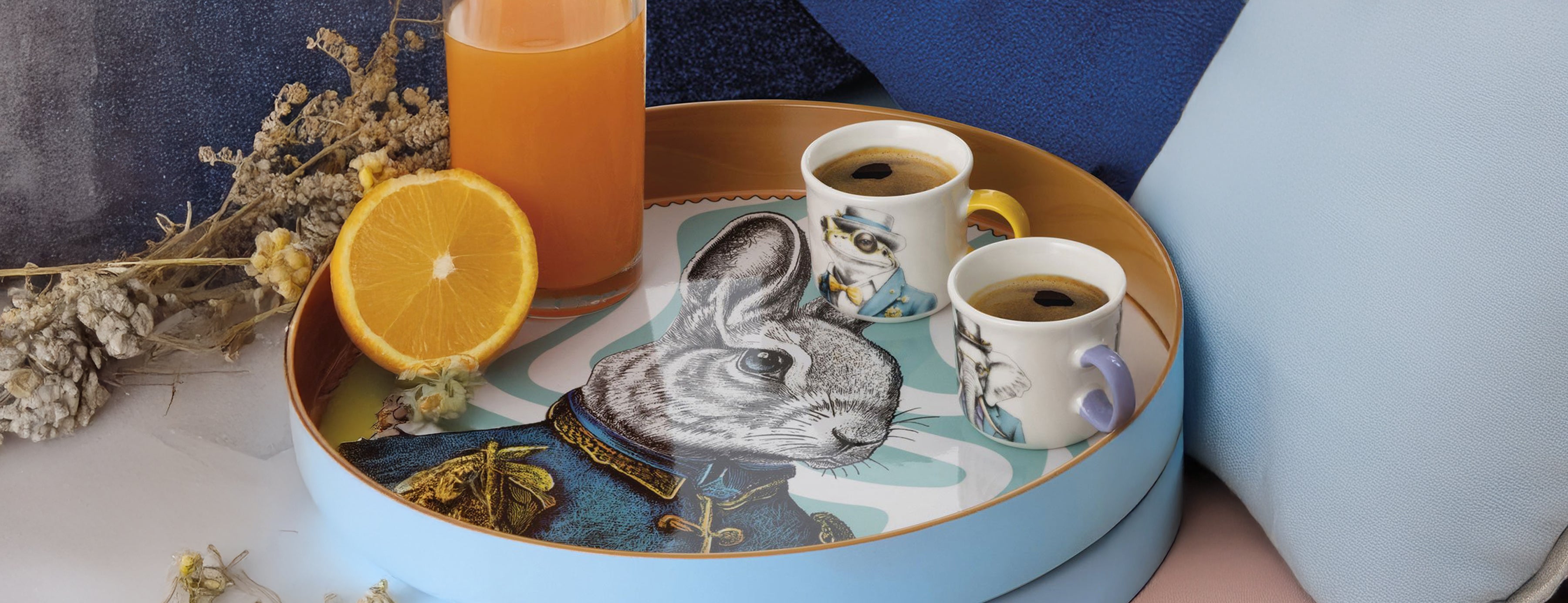 Set 6 tazzine caffè impilabili in porcellana decorata con Metalrack COCORICO' Egan