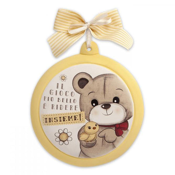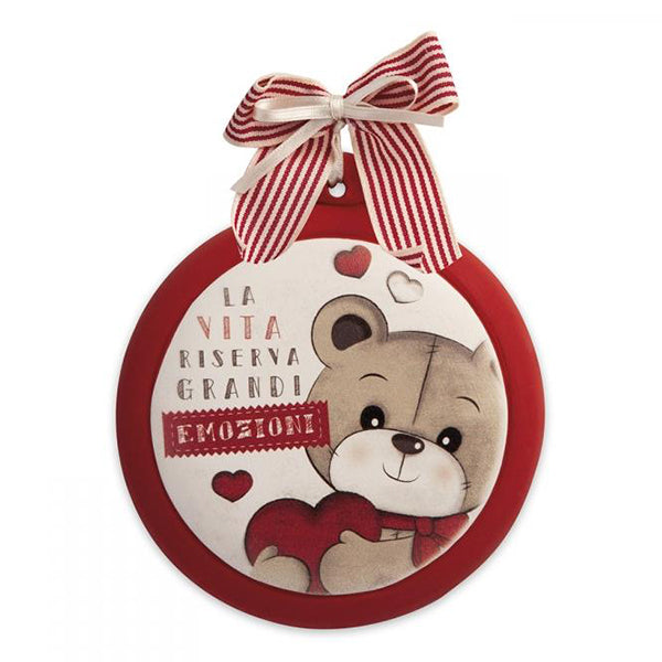 Le formelle in ceramica decorata della collezione "Il Mondo di Oliver" di Egan sono incantevoli creazioni che ritraggono il tenero orsetto Oliver con vari simboli, frasi e in una gamma di colori, rendendole un'idea perfetta per regali speciali, sia per la nascita che per il battesimo.