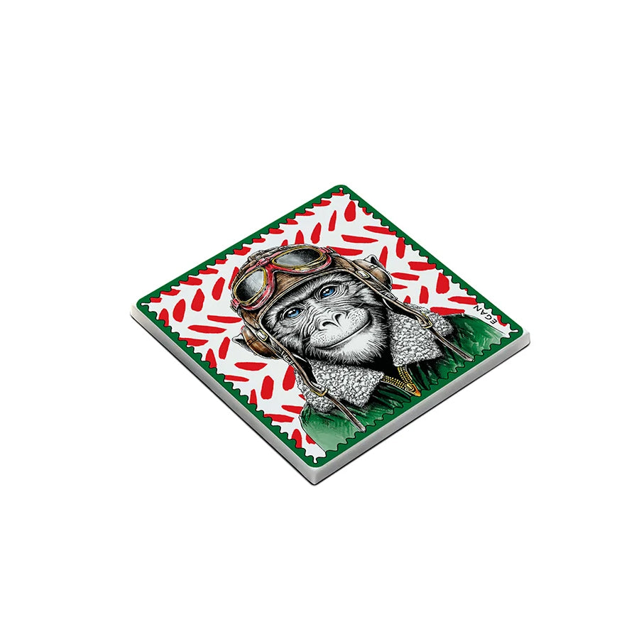 Sottobicchiere in ceramica decorata e sughero Scimmia HUMAN ESSENCE “BOLDNESS” Egan